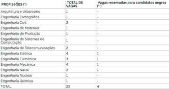 As chances são de nível superior para formados em arquitetura e urbanismo e engenharia (cartográfica, civil, de materiais, de produção, de sistemas de computação, de telecomunicações, elétrica, eletrônica, mecânica, naval, nuclear e química).
