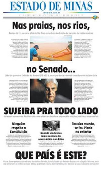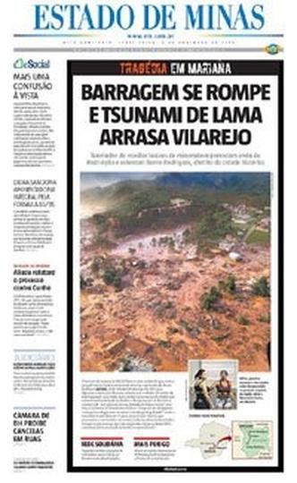 06 de novembro: Minas e o Brasil acordam sob o impacto do rompimento da Barragem do Fundão, ainda sem a real dimensão da tragédia, e o EM destaca as primeiras informações e imagens do tsunami de lama que devastou Bento Rodrigues. Ali começava a rota de destruição que só iria terminar no mar, no Espírito Santo