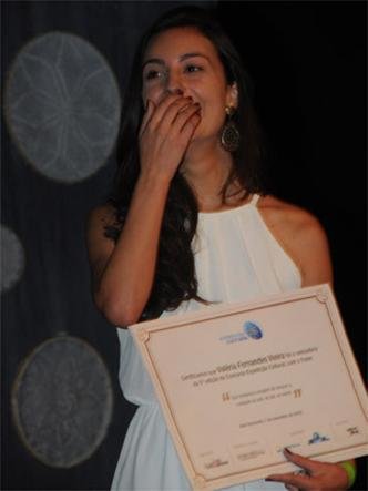 Foi com muito entusiasmo e emoção que a estudante de zootecnia Valéria Fernandes Vieira, de 26 anos, subiu ao palco do Teatro Alterosa na noite de segunda-feira para receber o prêmio do concurso de frases da 5ª edição da Expedição Cultural Estado de Minas, realizada pela Fundação Assis Chateaubriand, em parceria com a Petrobras. “Foi totalmente inesperado. Foi ótimo saber que tantas pessoas se mobilizaram para me apoiar nas votações. Agradeço a todos, em especial à organização do concurso, aos outros participantes, que também mereciam o prêmio e aos meus familiares”, disse Valéria. A jovem recebeu passagens para viajar para o Rio de Janeiro ou São Paulo, com direito a acompanhante e roteiro cultural personalizado.