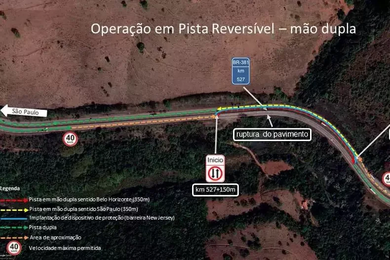 Entre 29 e 30 de janeiro, das 23h da noite às 05h da manhã, a rodovia será totalmente interditada na pista reversível do km 527, em Brumadinho, para implantação de barreiras.