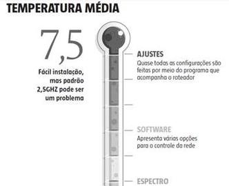 No quesito configurações, o E900 tem padrão 802.11N, capaz de aguentar até 300MBps de velocidade – hoje, as operadoras oferecem, para uso doméstico, no máximo 100MBps. Além disso, funciona em frequência de 2.4GHz, que, segundo a empresa, fornece sinal mais confiável para a rede.