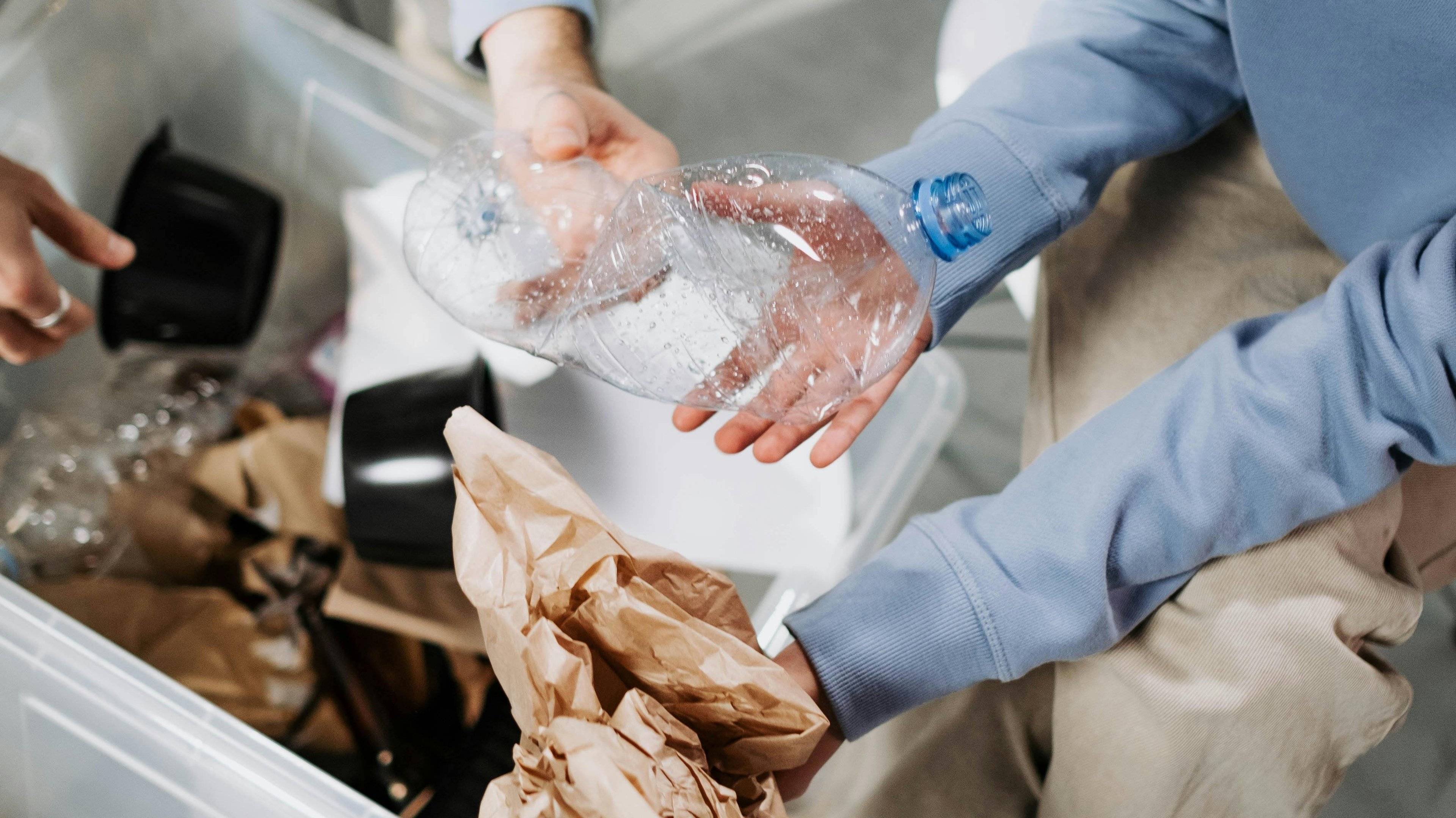 Para quem tem pouco espaço, não é preciso ter várias lixeiras coloridas. Manter apenas dois recipientes já resolve: um para os recicláveis secos e outro para os orgânicos e rejeitos. Amassar as latinhas e desmontar as caixas de papelão ajuda a economizar bastante espaço.