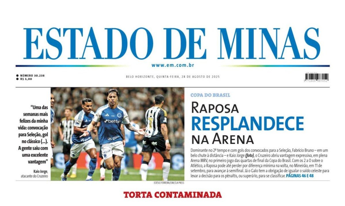 Confira a capa do Estado de Minas do dia 28/08/2025