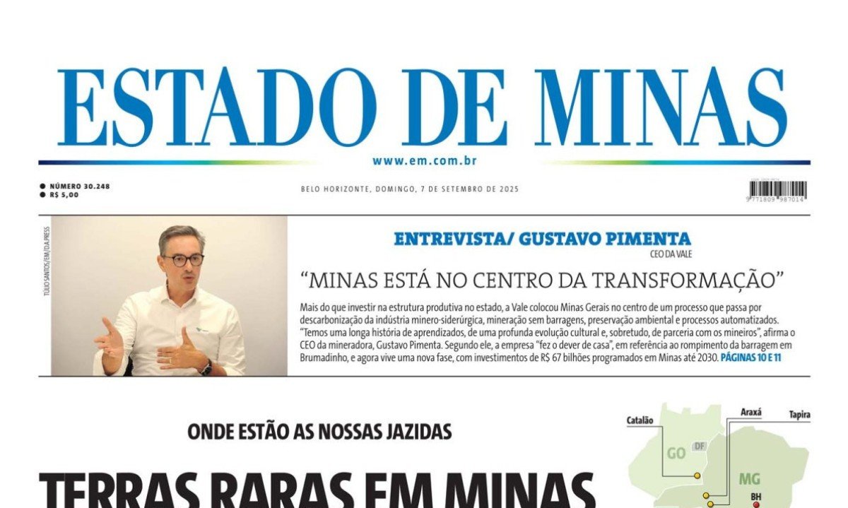 Confira a capa do Estado de Minas do dia 7/9/2025