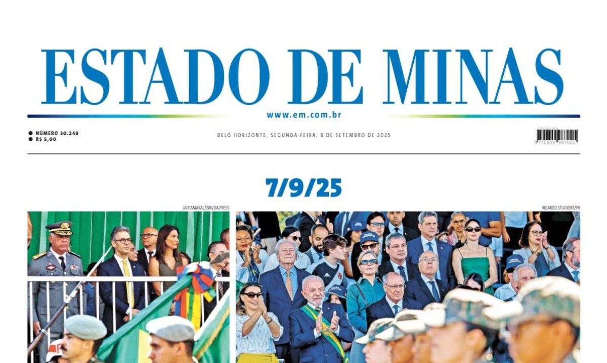 Confira a capa do Estado de Minas do dia 8/9/2025