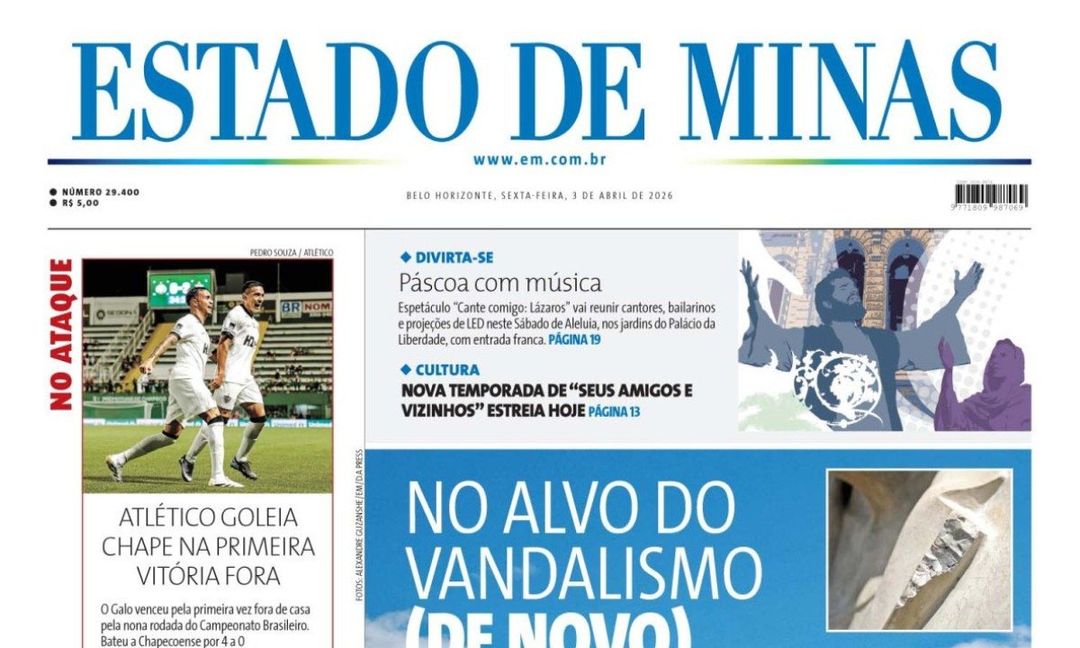 Edição impressa do jornal Estado de Minas de sexta-feira, 3 de abril de 2026