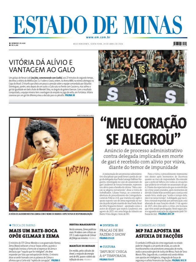 Edição impressa do jornal Estado de Minas de sexta-feira, 24 de abril de 2026