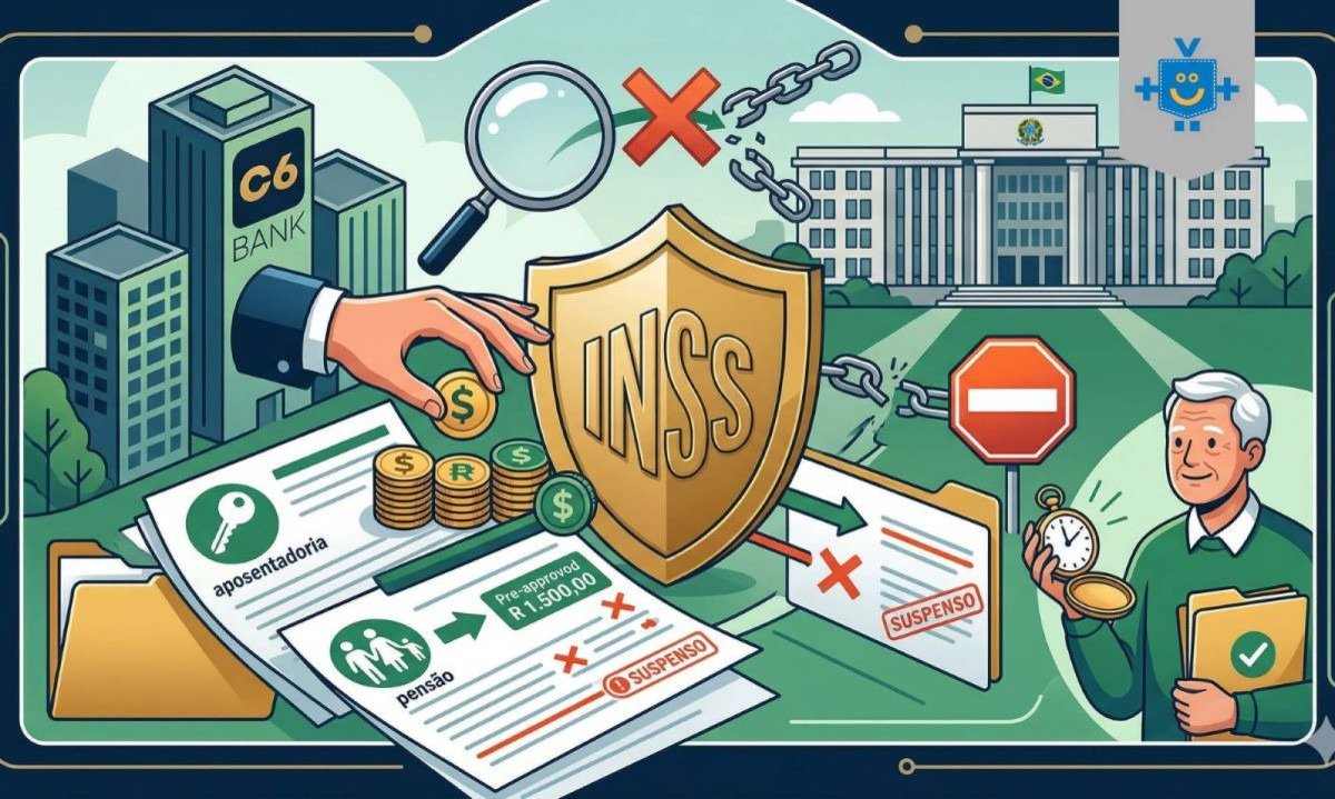 A suspensão anunciada pelo INSS não envolve aposentadorias ou pensões. O que foi interrompido foram novos empréstimos consignados do C6 Bank ligados ao benefício previdenciário.