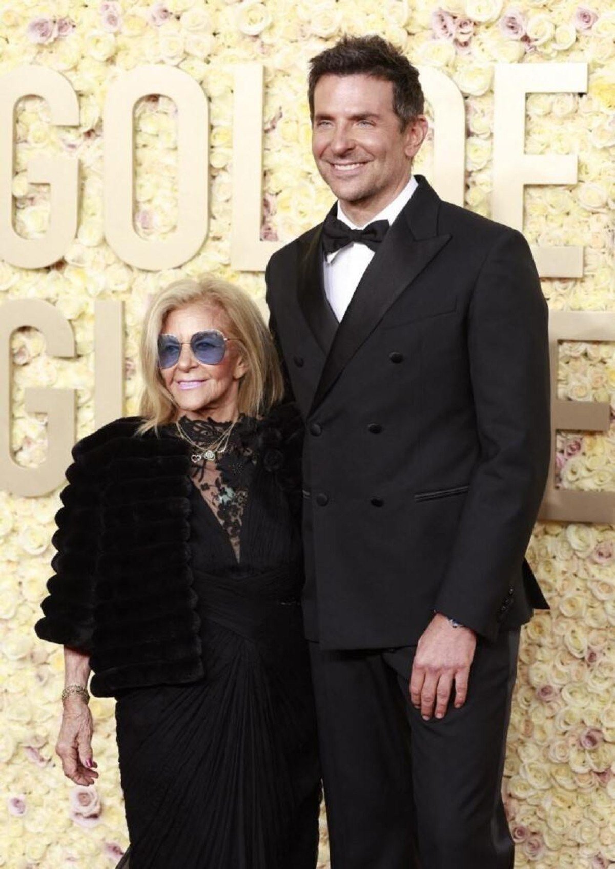 Bradley Cooper e sua mãe, Gloria Campano, no tapete vermelho do 81º Globo de Ouro