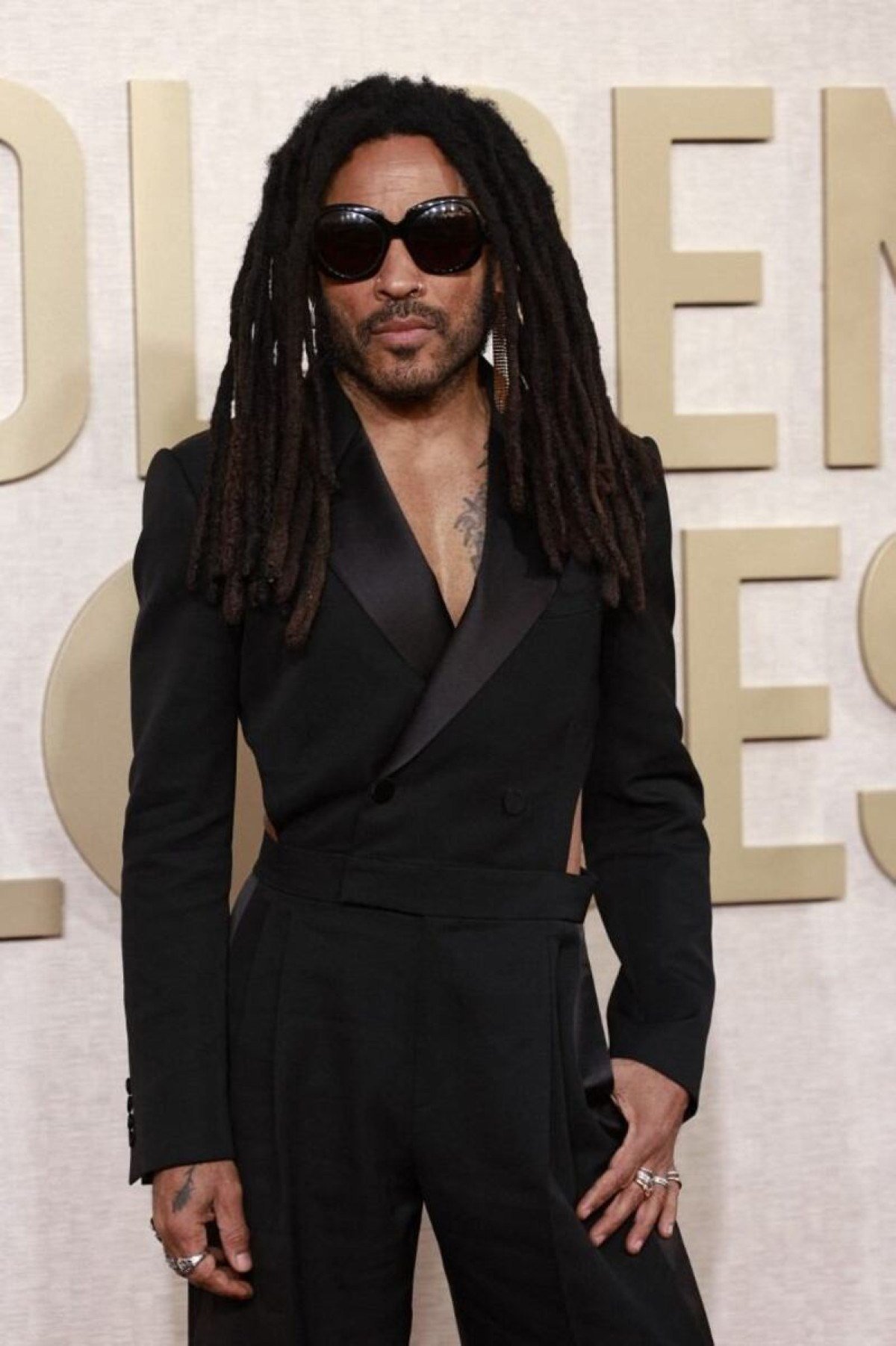 Lenny Kravitz, no tapete vermelho do 81º Globo de Ouro