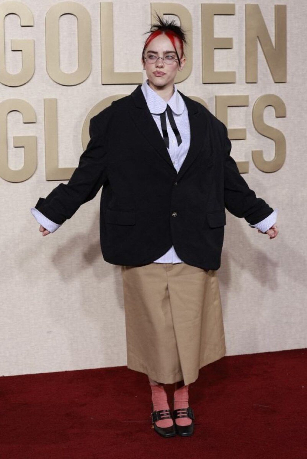 Billie Eilish, no tapete vermelho do 81º Globo de Ouro