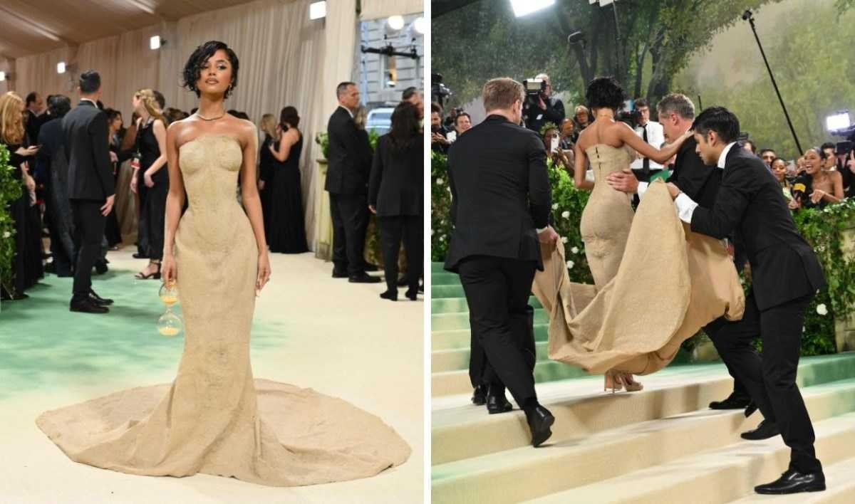 Em seu primeiro Met Gala, a cantora Tyla deu o que falar por conta do seu look. Com um vestido justo que imitava areia, a ganhadora do Grammy de Melhor Performance de Música Africana em 2024 precisou ser carregada para subir as escadas do Metropolitan Museum of Art, em Nova York, nos Estados Unidos, nessa segunda-feira (6/5).