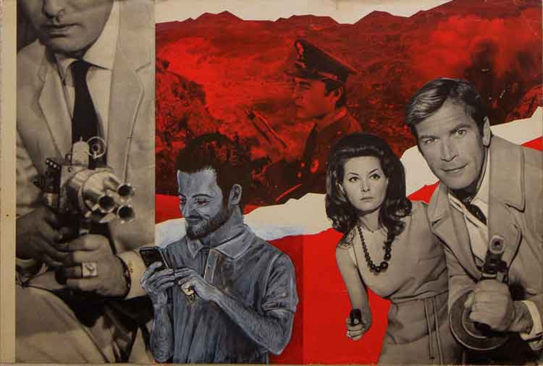 A partir dessas imagens, ele esgarça as contradições sociais, usando-as como ponto de partida para composições que funcionam como verdadeiros desmontes visuais. Por meio de colagens e re-colagens, Marco Paulo reconfigura imagens, agora recriadas em pintura, expondo suas camadas ideológicas.
