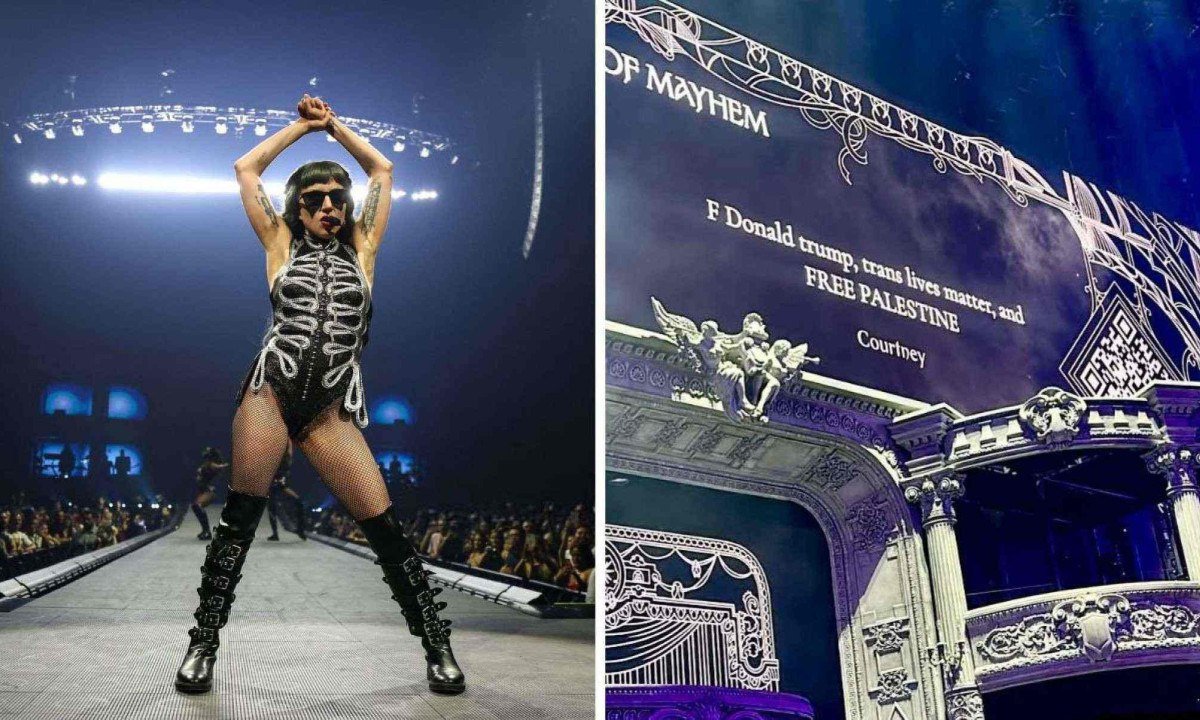 A cantora Lady Gaga iniciou, na noite de ontem (16/7), sua nova turnê “Mayhem ball”. Antes da apresentação na T-Mobile Arena, em Las Vegas, nos Estados Unidos, ela exibiu mensagens enviadas pelos fãs. Algumas delas, de cunho político, xingavam Trump e defendiam os direitos das pessoas LGBTQIAPN+.