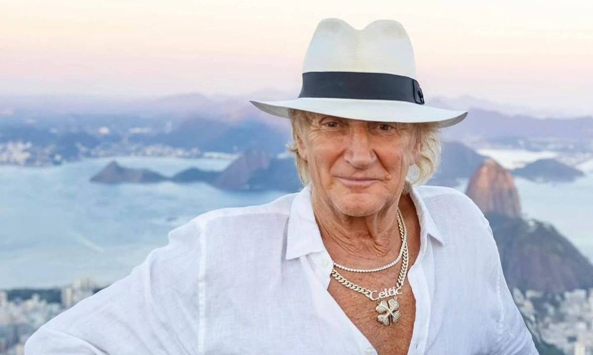 SÃO PAULO, SP (FOLHAPRESS) -O cantor inglês Rod Stewart, 80, curre férias no Brasil e tem curtido o Rio de Janeiro com a mulher, Penny Lancaster, e o filho Alastair Wallace.
