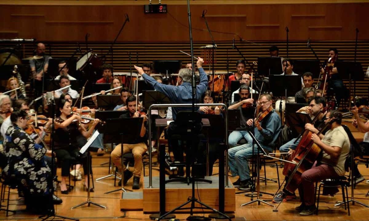 “Sempre gosto de gravar com vocês depois do almoço. Está muito bom.” O relógio digital na parte central da Sala Minas Gerais marcava 14h21 na última segunda-feira (10/11), quando a voz vinda de um alto-falante, em português com sotaque, levantou risos. Não da plateia, totalmente vazia, mas do palco, ocupado pelo maestro Fabio Mechetti e os musicistas da Filarmônica de Minas Gerais.