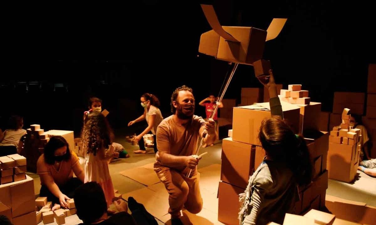 Sandra Coelho toma como exemplo “Caixa ninho”, cujo cenário é composto por 720 caixas de papelão de vários tamanhos e está sujeito à interferência das crianças, que estão inseridas nele. “Trabalhamos com a ideia de construtividade e relação”, ressalta.