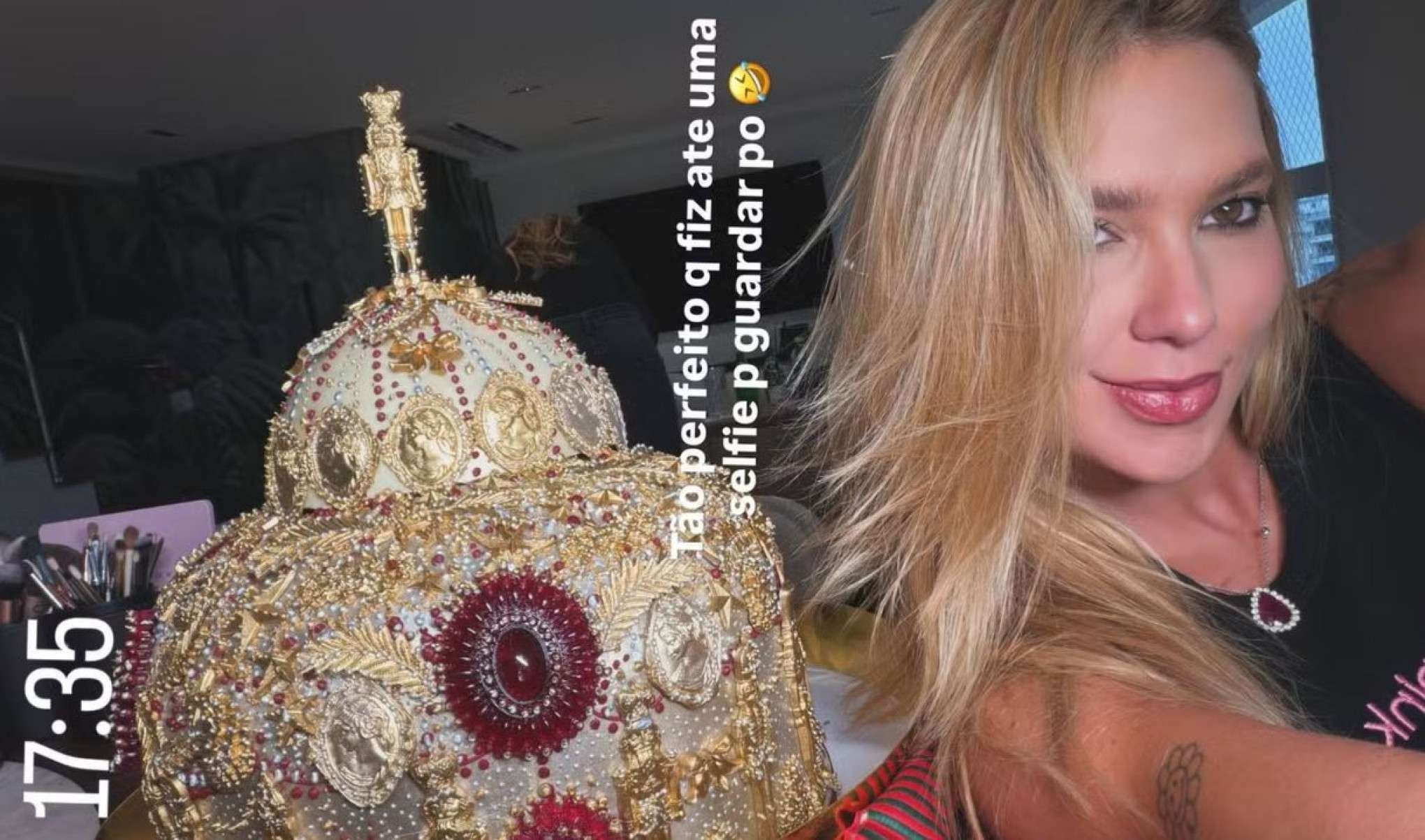 “Eu vou pro aniversário do meu cunhado hoje lá no Rio, vou levar pro pessoal comer, porque não tem nem gente aqui pra comer isso. É muito grande, imenso. Vai até andar de avião hoje. Quando a gente cortar, eu filmo pra vocês, porque dentro tem um recheio surreal. O Denilson me falou”, contou.