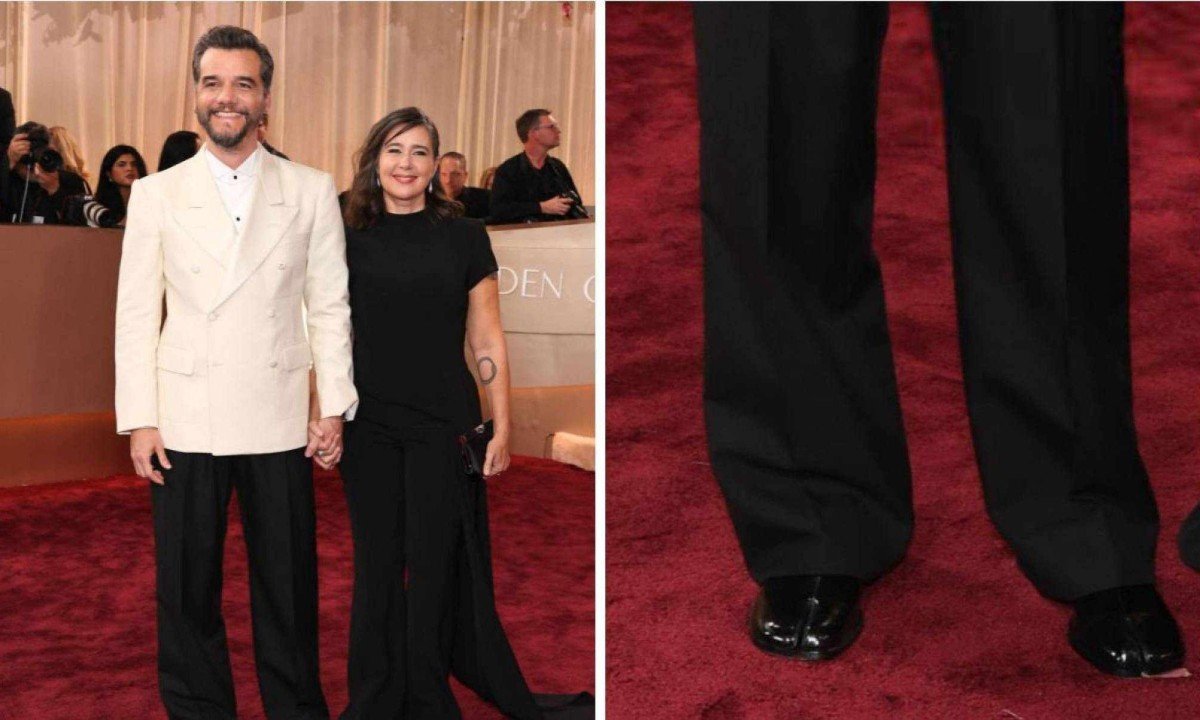 Outro detalhe que chamou atenção foi o calçado escolhido por Moura: o sapato Tabi, famoso pelo design com o dedão separado. O modelo, inspirado em um calçado japonês do século XV e reinterpretado por Martin Margiela nos anos 1980, tornou-se item cult da moda contemporânea. Dependendo do material, versões originais do Tabi podem ultrapassar os R$ 9 mil.