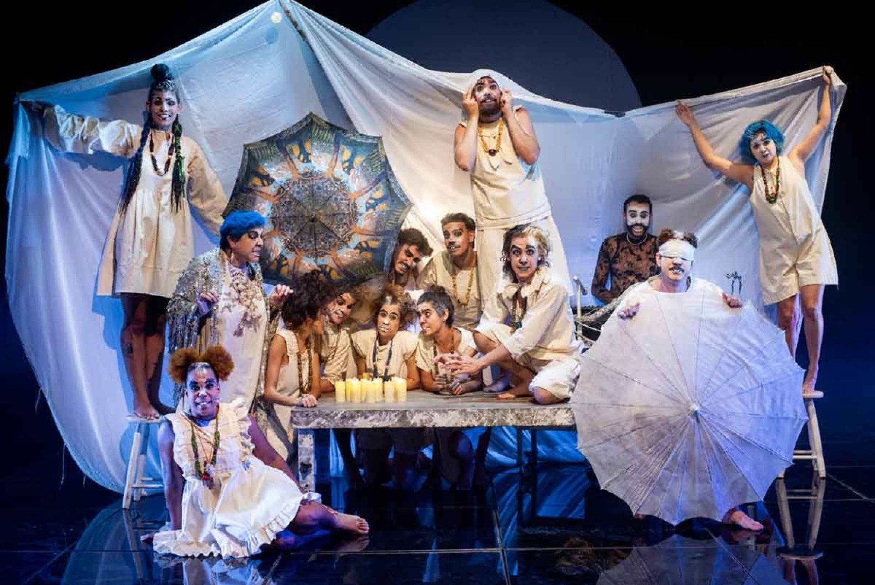 Ao longo do ano passado, “Saudade” foi apresentado em ensaios abertos em Belém e em municípios do interior paulista. Cada apresentação deu ao grupo materiais que puderam ser incorporados ao espetáculo. Entre eles, colares trazidos do Pará, hoje utilizados pelos atores em cena.