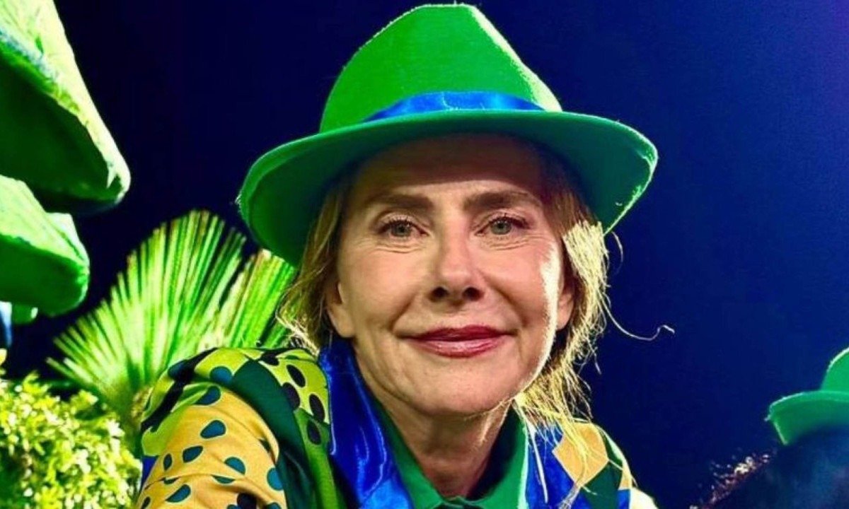 Atriz foi destaque de carro alegórico da Imperatriz Leopoldinense. Ela usou 'colinha' para decorar samba-enredo da agremiação
