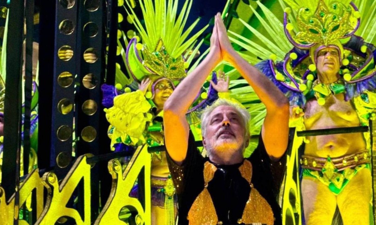 RIO DE JANEIRO, RJ (FOLHAPRESS) - Sentado no último carro da Mocidade Independente de Padre Miguel, na Marquês de Sapucaí, Roberto de Carvalho ora olhava para as fantasias, ora para céu, como se vivesse um sonho com enredo em homenagem a Rita Lee.