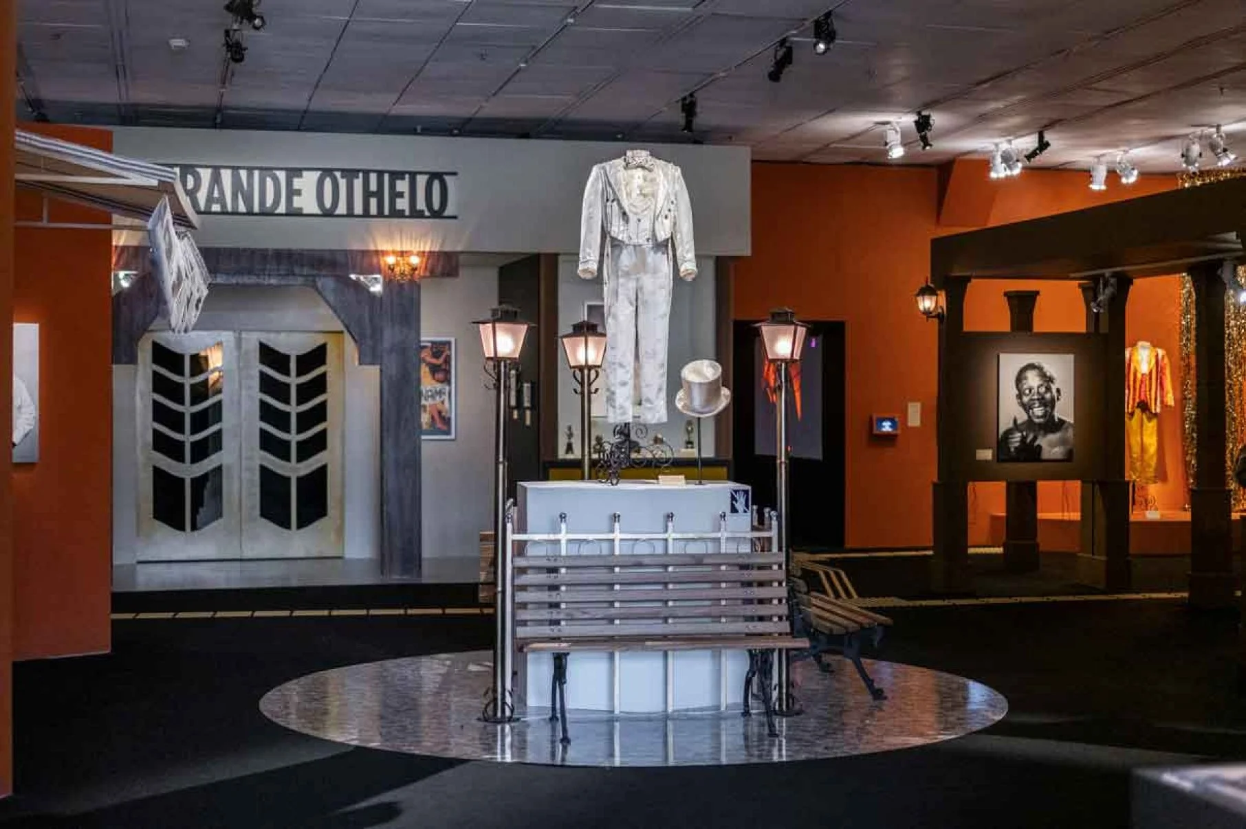 Ao centro, como se fosse um monumento, cercado por quatro lampiões e banquinhos de praça, o terno prata que o ator e comediante natural de Uberlândia usou no filme “Carnaval Atlântida”, de José Carlos Burle e Carlos Manga. Essa pequena cidade cenográfica faz parte da “Ocupação Grande Othelo”, em cartaz no Itaú Cultural, na capital paulista.