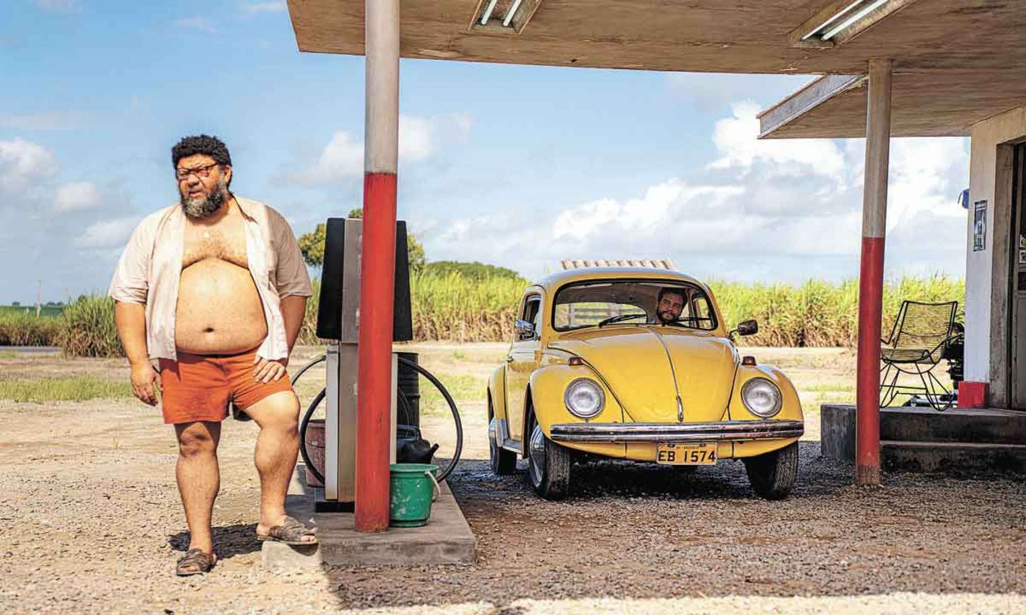 Na cena de abertura de “O agente secreto”, Marcelo (Wagner Moura) encosta seu Fusca em um posto de gasolina na entrada de Recife. Sozinho, abastece o carro, quando se depara com uma situação insólita: um cadáver, esquecido há dias, jaz ali por perto, ignorado por todos.