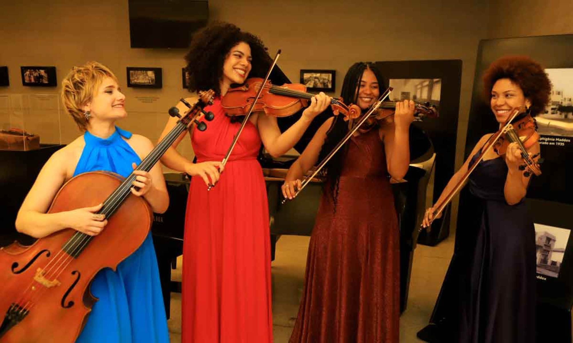 Dando continuidade ao programa, o quarteto Entre Cordas vai interpretar obras de Florence Price e Chiquinha Gonzaga. Já para fechar a manhã de domingo, o “Bolero” será executado novamente a quatro pianos, mas com outra formação. A obra mais conhecida de Maurice Ravel vai contar também com o trio d’Elas, de piano, oboé e fagote.