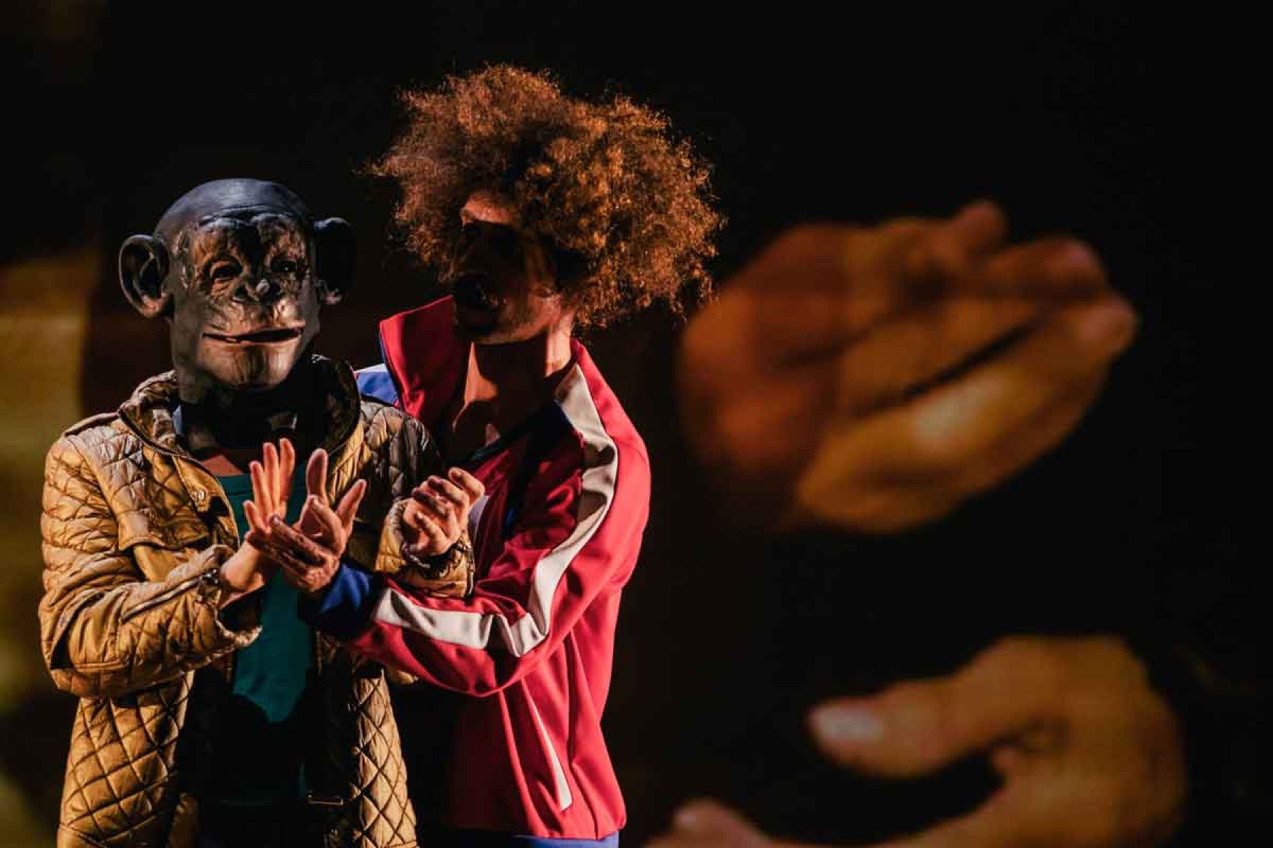 O espetáculo parte de uma pergunta emblemática: o que realmente nos diferencia dos animais? A partir desta provocação, a encenação combina teatro, dança, música ao vivo e artes visuais. Dois bailarinos dividem o palco com dois atores. Cada intérprete assume mais de um personagem nesta peça que aposta na multiplicidade e no jogo de camadas.