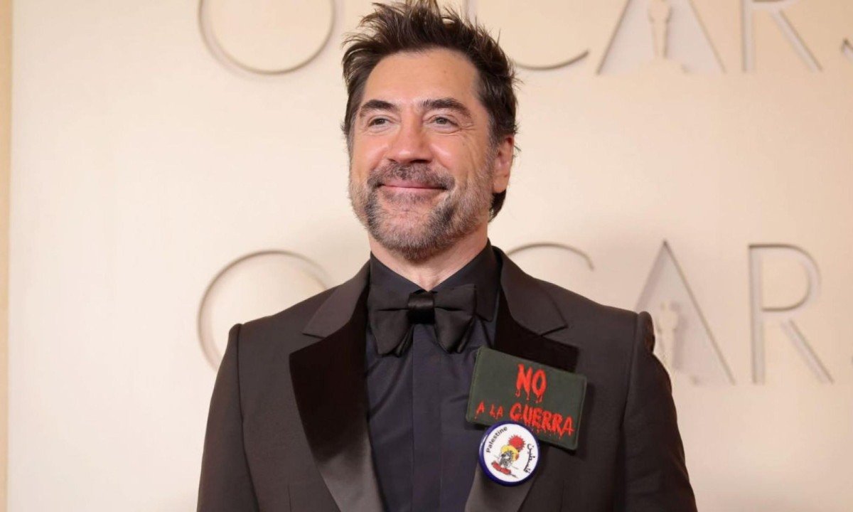 Antes de subir ao palco, Bardem já havia chamado a atenção no tapete vermelho da cerimônia. O ator usava dois broches presos ao terno com mensagens relacionadas aos conflitos no Oriente Médio.
