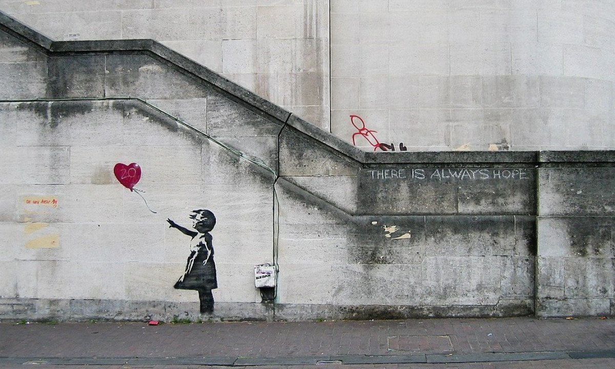 Segundo a reportagem, o britânico por trás do famoso desenho da garota em preto e branco soltando um balão em formato de coração é Robin Gunningham, um pintor e artista de rua que fez seu nome e uma fortuna de milhões de libras – com obras vendidas em galerias de arte e leilões ou diretamente para colecionadores – sem jamais mostrar o rosto.