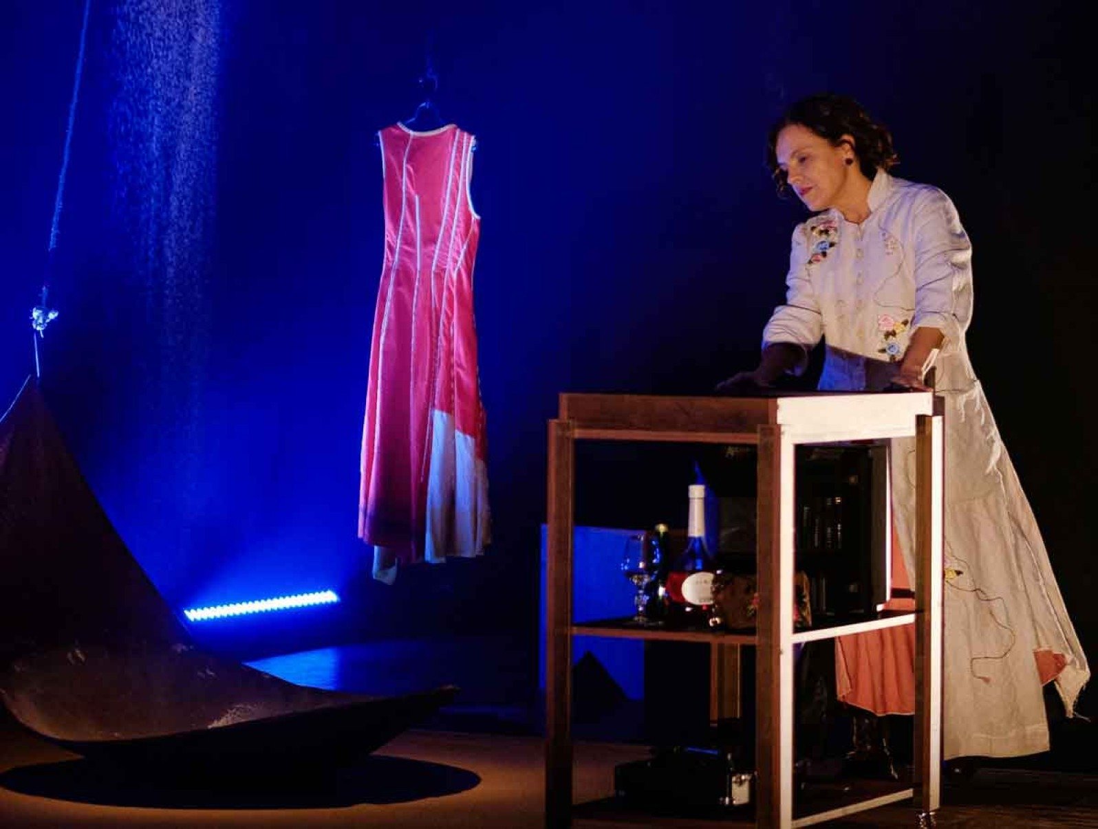 “Como a peça é estruturada a partir de lembranças, o olhar da personagem frequentemente assume um tom vago e sereno, refletindo o gesto de recordar enquanto ela conta suas histórias e segue com a rotina de zeladora de cemitério”, conta Marcella.