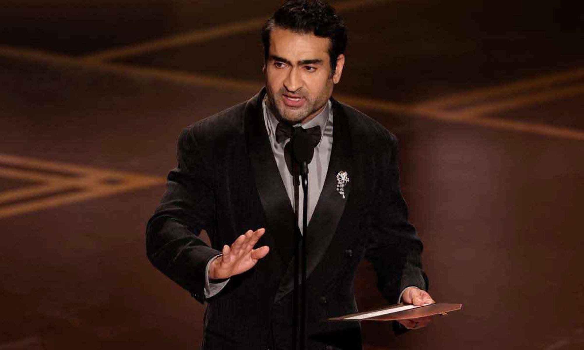 Kumail Nanjiani anuncia que houve um empate na categoria Melhor Curta, pede "calma" à plateia e avisa que chamará um vencedor ao palco de cada vez - (crédito: Patrick T. Fallon / AFP)