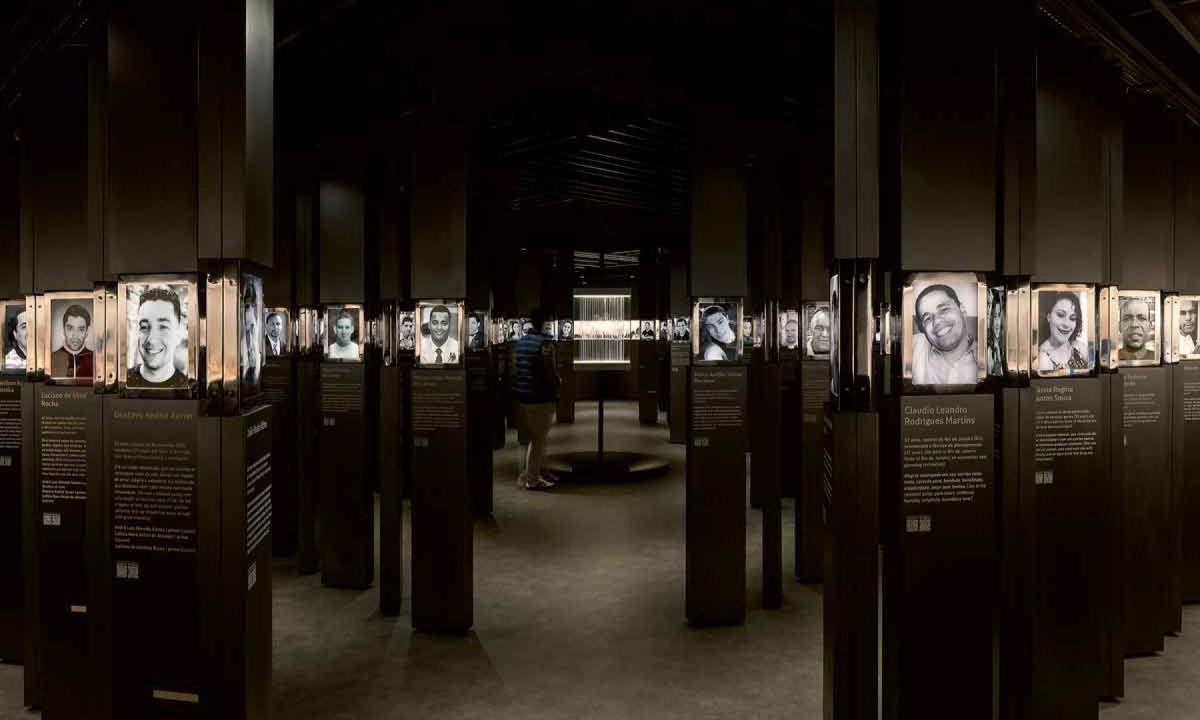Ao atravessar as fendas de entrada, o visitante chega ao ambiente iluminado por pequenas aberturas no teto. Passa pelo salão e o espaço meditativo propositalmente escurecido, sugerindo “noite longa” ou “amanhecer tardio”. Depois, segue pela passagem de 230 metros que corta o terreno como se fosse outra fenda. Chega ao Espaço Memória, no qual se depara com fotografias, nomes e objetos pessoais das vítimas. Depois, segue pelo Espaço Testemunho, onde monitores chamados contadores de tempo mostram o instante da ruptura.