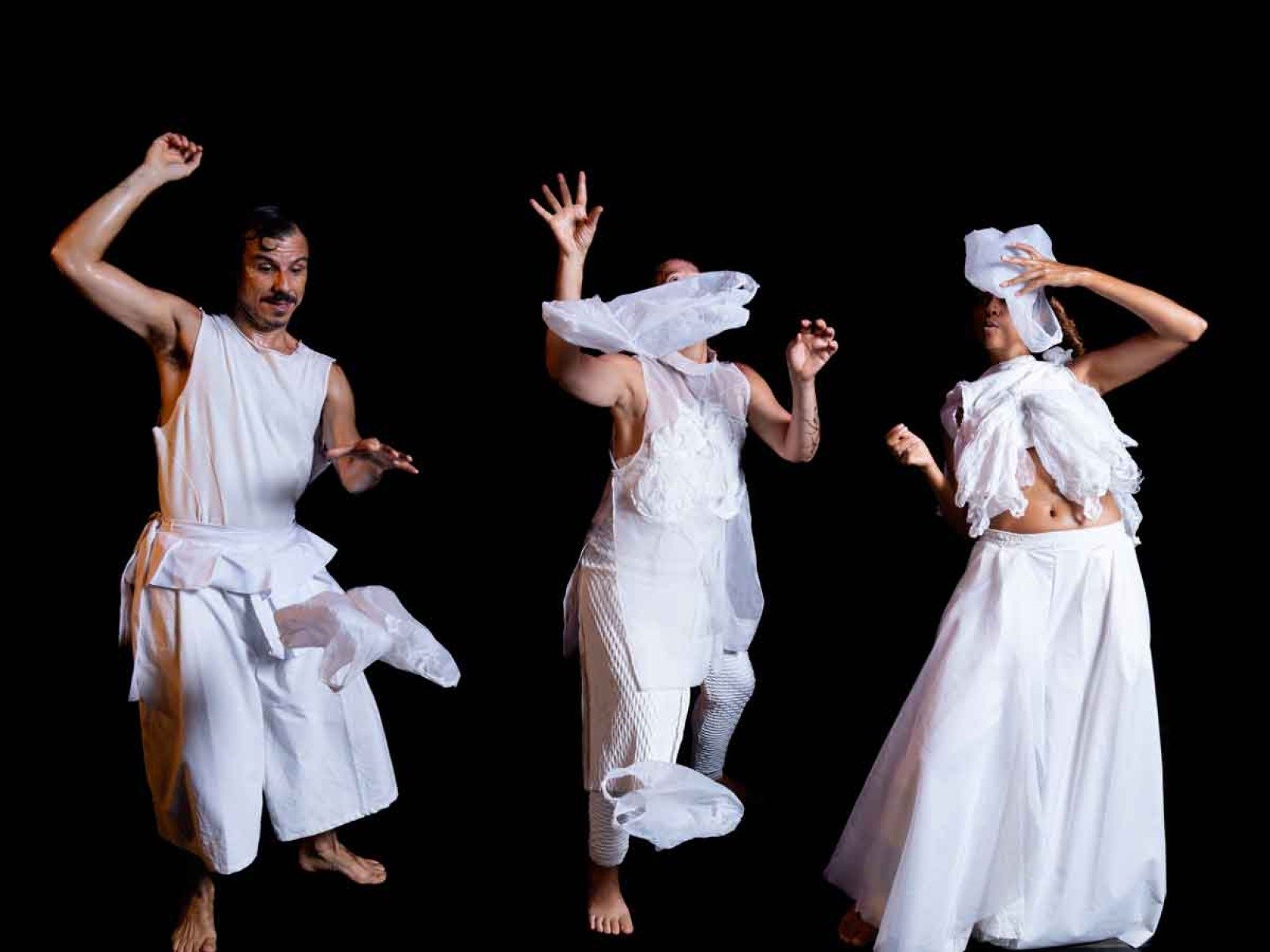 “Pensamos no ‘desmonte’ voltado para o gênero, para o social, político e ambiental, então as coisas foram fluindo no processo de criação. O plástico é um desmonte não só ambiental, como físico, porque o plástico está presente nas nossas correntes sanguíneas, no nosso cérebro”, diz Amora Tito.