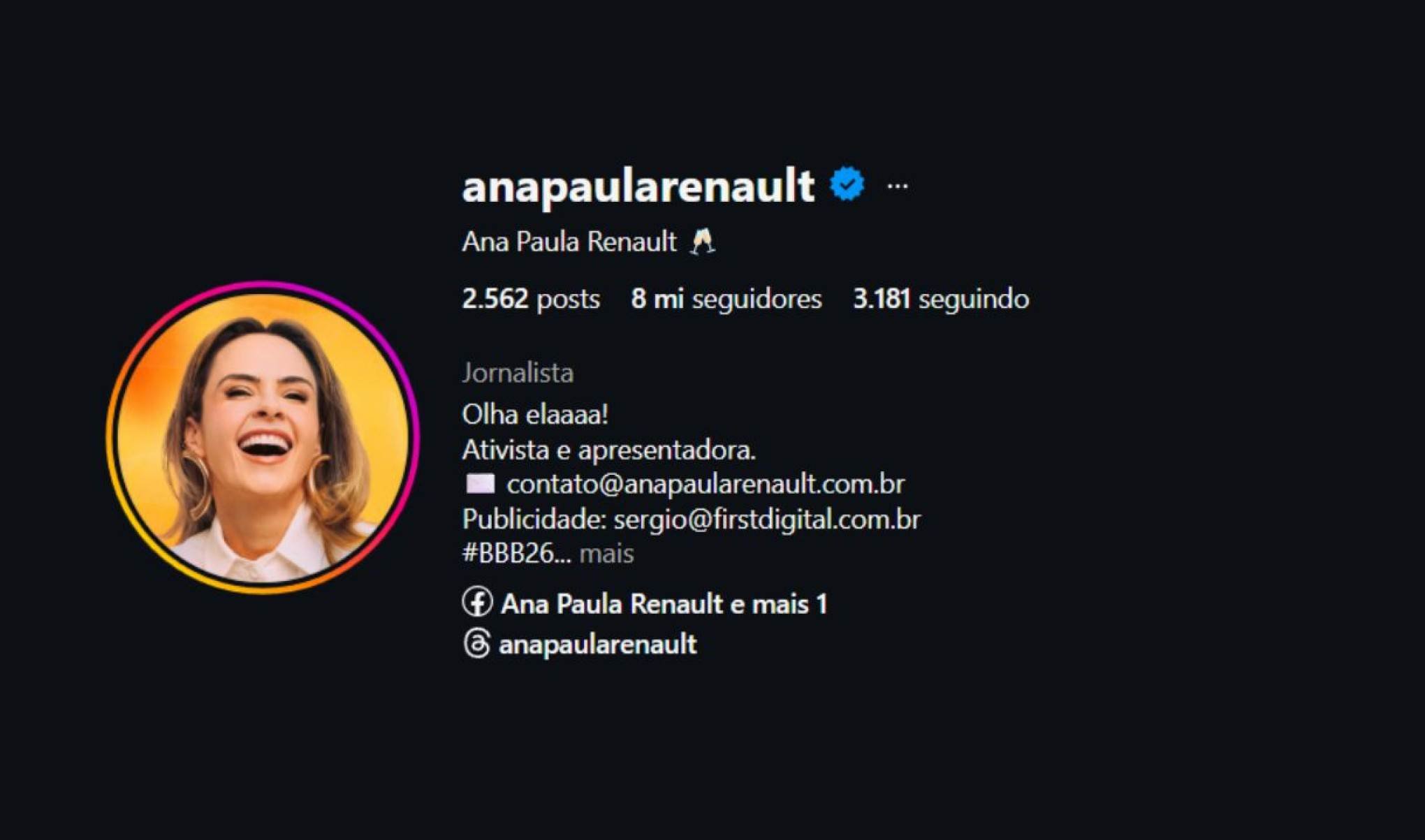 - Ana Paula Renault: de 2,4 milhões para 8 milhões