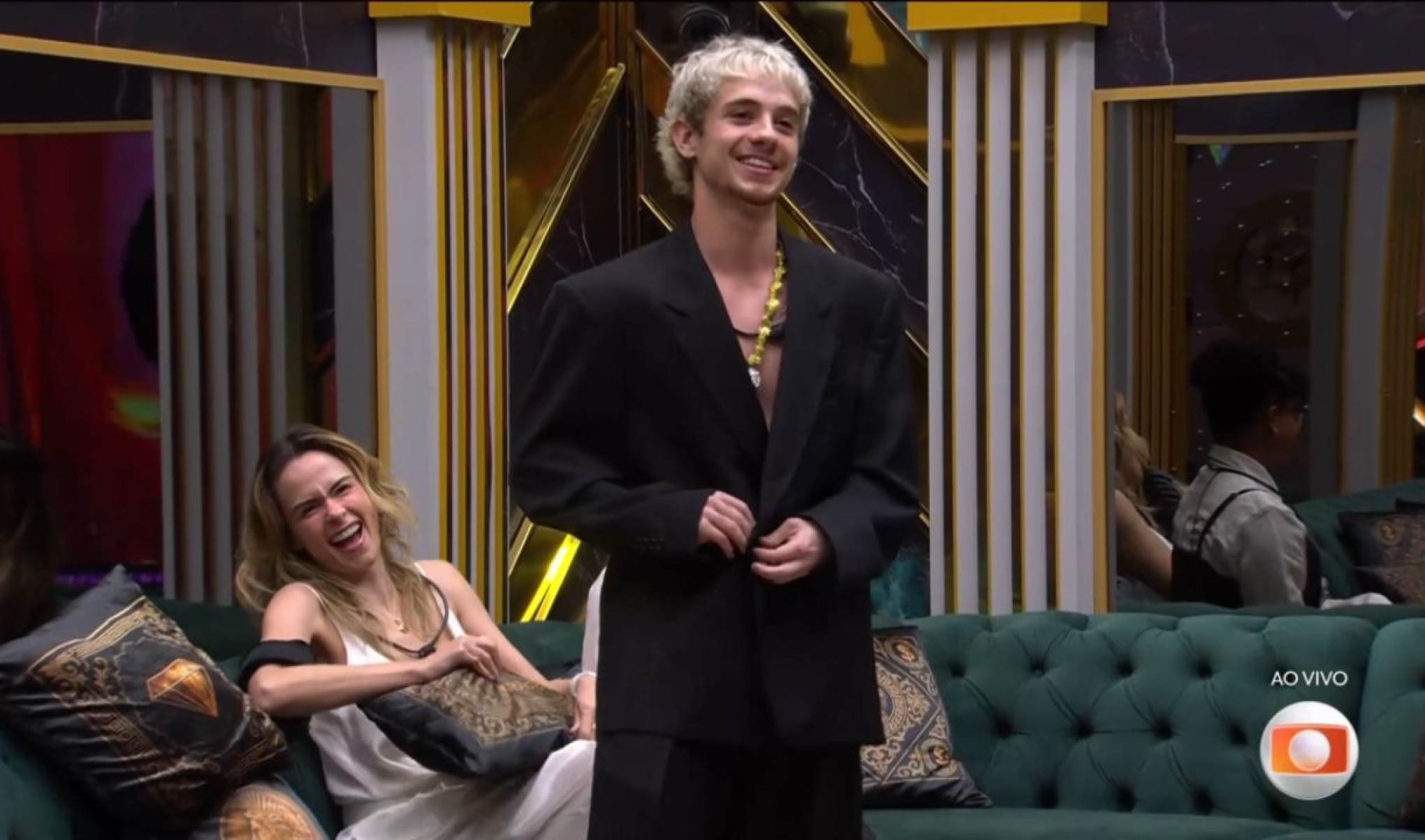 Fiel ao estilo irreverente, o brother chamou atenção já na última noite. Cumprindo uma promessa feita à finalista Milena Moreira, ele surgiu usando um blazer elegante combinado apenas com uma cueca branca, escolha que, segundo ele, exigia “muita coragem”.