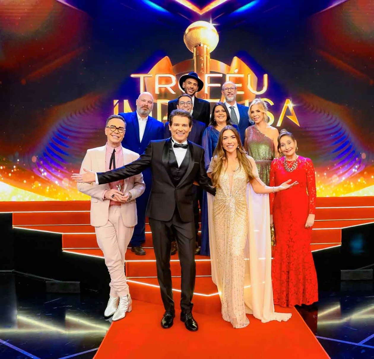 A 56ª edição do Troféu Imprensa, que será exibida domingo (26/4) pelo SBT/Alterosa, reúne nomes importantes da TV e do entretenimento. Glória Pires, William Bonner, Alexandre Nero, Ana Maria Braga, Danilo Gentili, Galvão Bueno, Dudu Camargo, Erick Jacquin, Helena Rizzo, Henrique Fogaça, Luciano Huck, Sandra Annenberg, Silvinha Abravanel, Simone Mendes e Tiago Barnabé participaram da cerimônia gravada em 15 de abril, em São Paulo. Eles receberam estatuetas relativas a edições anteriores.
