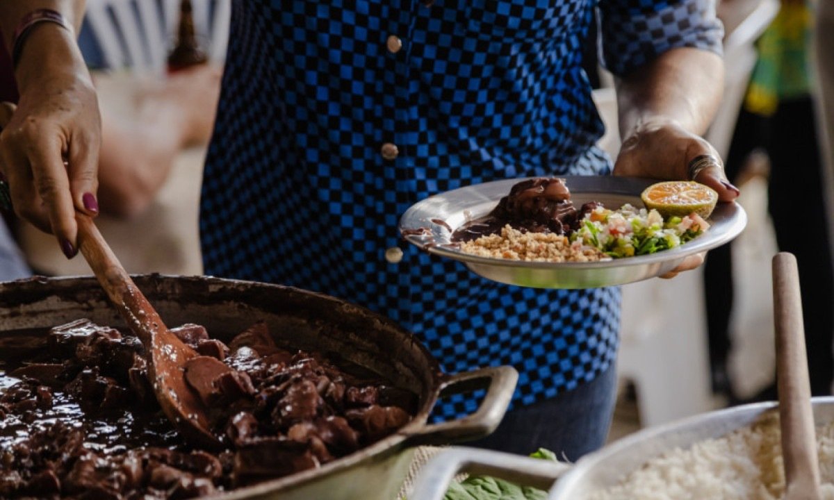 No almoço, a feijoada do Quilombo Ribeirão faz sucesso. “É uma comida comum pra gente, mas que encanta quem chega. O que pra nós é cotidiano, vira aprendizado para quem vem de fora”, conta Fabiana, que prepara a feijoada com carnes de porco, feijão preto e cheiro-verde colhido na horta comunitária. A comida, segundo ela, também varia com as estações. “Se tem muita mexerica, a gente faz bolo, salada. Nada se perde.”