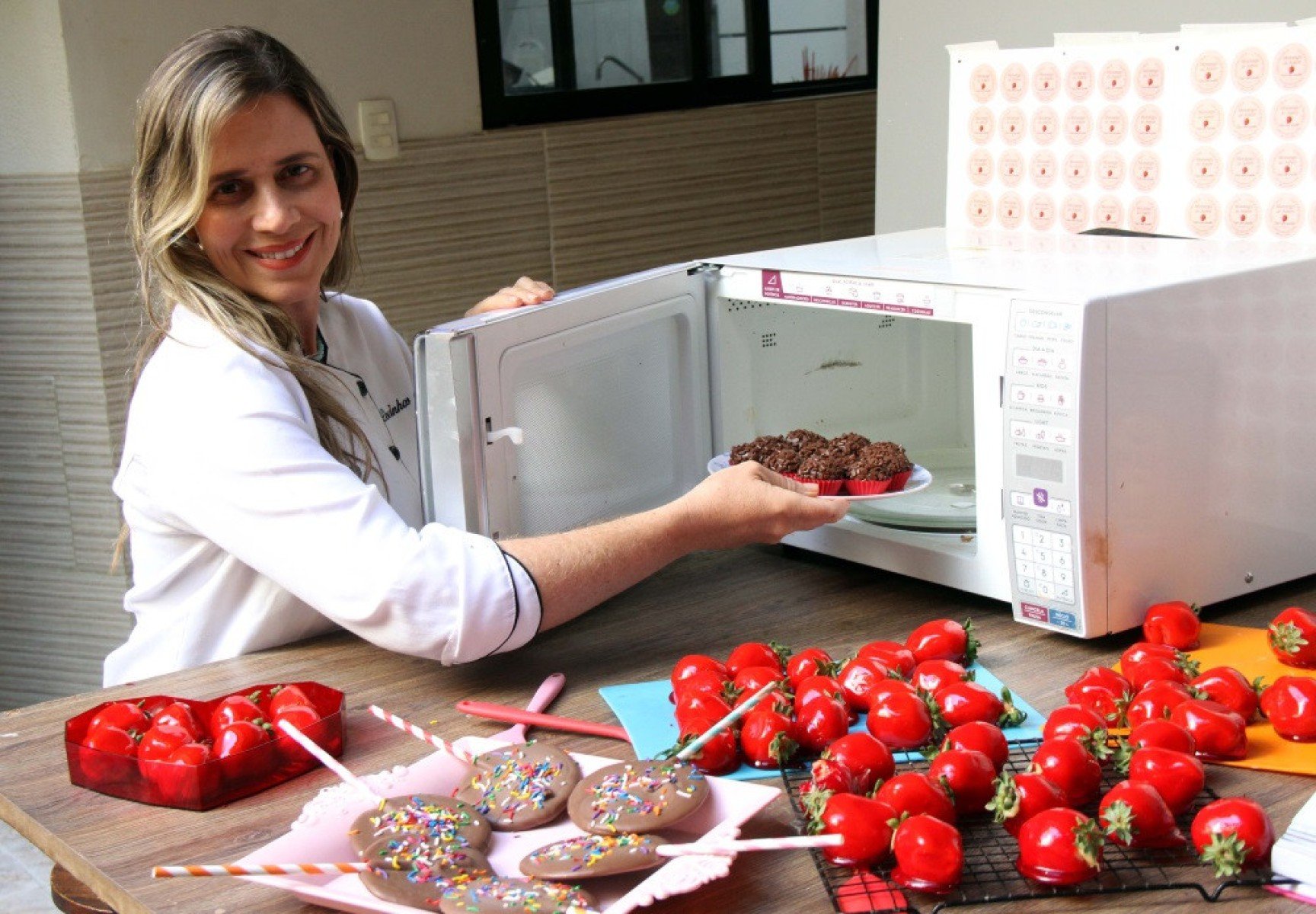 Hoje, ela segue com o preparo do quitute no micro-ondas. "Facilita. Ao invés de ficar mexendo na panela, o micro-ondas faz para você. Otimiza o tempo, a logística fica mais redonda. Não consigo mais viver sem", diz, ela que agora aposta também no morango do amor - prepara o brigadeiro branco, que faz parte da receita, no eletrodoméstico.