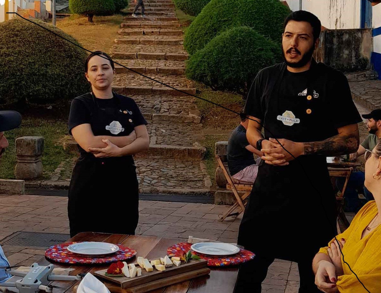 Já aos pés da escadaria que leva à Igreja Santa Rita, cartão-postal da cidade, estão o Café da Praça (@cafedapracadoserro) e empório, que têm à frente a turismóloga Grizielle Campos. Nascida em família de produtores de queijo, ela sabe como usá-lo bem na harmonização com doces, geleias, sorvete de queijo e vinho.
