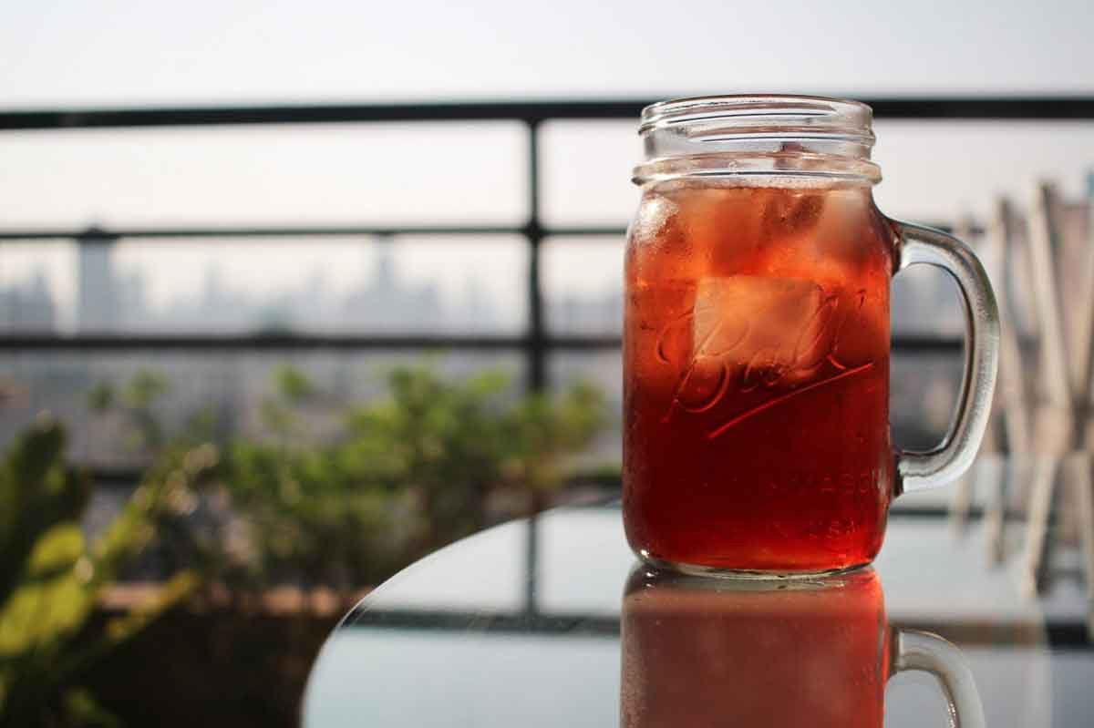 Prepare o chá: ferva um litro de água filtrada. Desligue o fogo e adicione 5 colheres de sopa de açúcar, mexendo bem até dissolver. Em seguida, coloque 2 sachês de chá (preto ou verde) e deixe em infusão por cerca de dez minutos. Retire os sachês e espere o chá esfriar completamente, até atingir a temperatura ambiente.