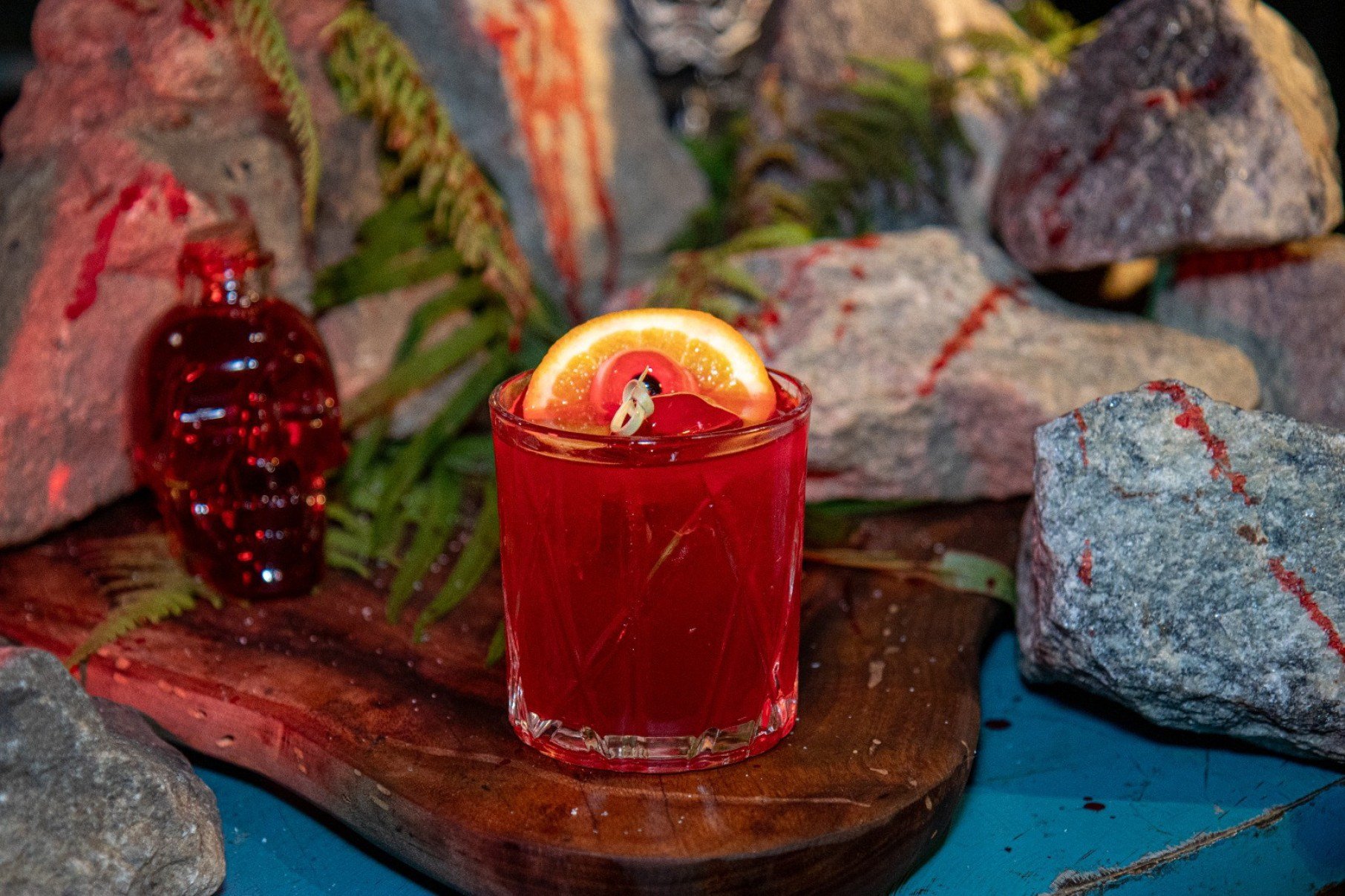 O cardápio também conta com “Vandinha Addams Gin” (R$ 35), uma versão da gim tônica com cor de sangue, espuma branca e uma dentadura comestível; “El Pumpikin Mango” (R$ 38), uma mistura de tequila, limão, energético de manga, abóbora e especiarias; “Crime Passional” (R$ 37), uma fusão de tequila, Timur Berry (pimenta do Nepal), Grapefruit, limão e refrigerante de limão; e “Bloody Negroni” (R$ 39), que mescla gim, vermute, Campari e laranja sanguínea (com polpa de coloração avermelhada).