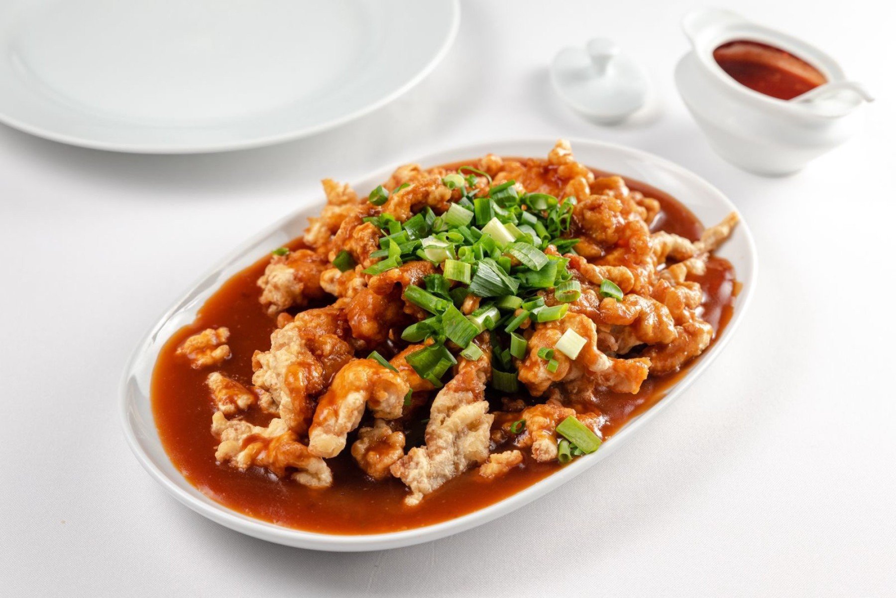 O lombo frito ao molho de feijão preto fermentado do Yun Ton é típico da região de Xangai