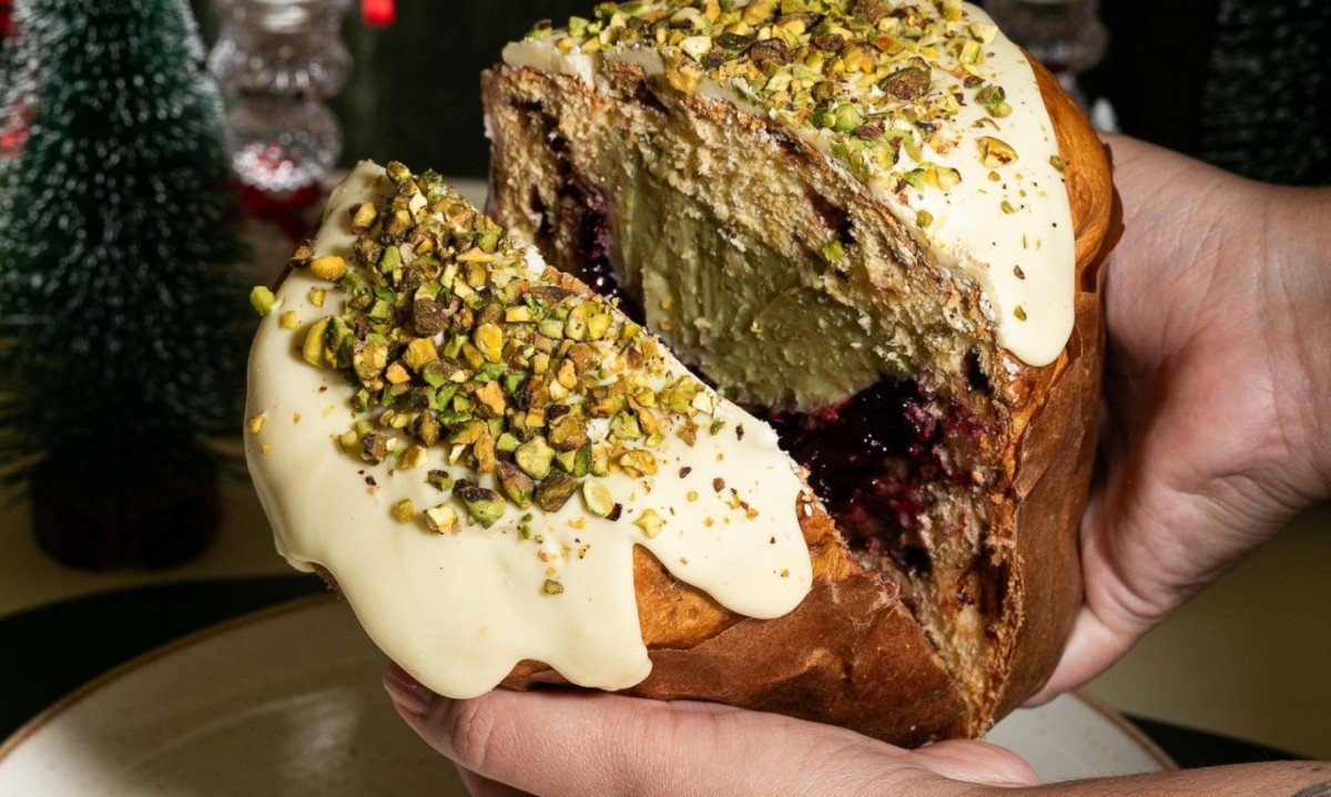 Como eles criam os sabores? Ficam atentos ao que faz sucesso ao longo do ano e transformam em recheio de chocotone. O de ganache de avelã com castanha de caju e chocolate, que é a novidade deste Natal, saiu de um bombom. Já o de brigadeiro com caramelo e flor de sal é “cópia” de um dos bolos mais pedidos. Pela mesma razão, permaneceu o de brigadeiro cremoso de pistache e geleia de frutas vermelhas. Essa combinação está em uma das tortas mais queridas.