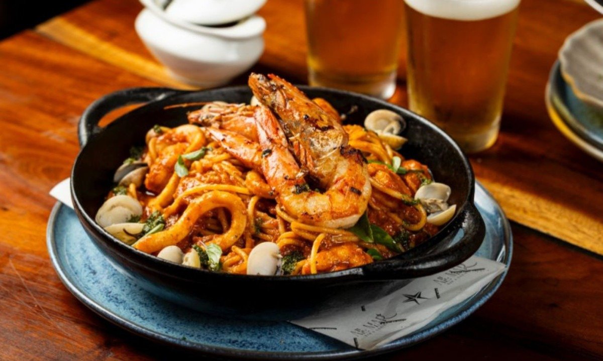 No cardápio, a proposta segue com petiscos como o ceviche de tilápia e salmão servido com chips de batata doce (R$ 65,90) e o vinagrete de frutos do mar, preparado com lulas, polvo laminado e camarões, acompanhado de cestinha de pães (R$ 89).