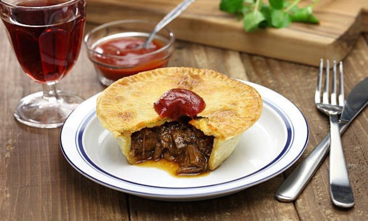 Considerado o prato nacional não oficial, a torta de carne é um clássico. Trata-se de uma pequena torta individual, com massa folhada e um recheio suculento de carne moída com molho gravy. É comum encontrá-la em padarias, em pubs e, principalmente, nos estádios de futebol.