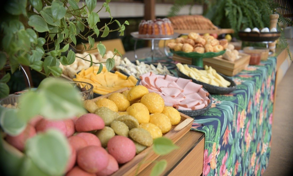 Para Taiza, não podem faltar no café da manhã suco verde e pão na chapa. “Pão na chapa para mim é memória afetiva. Como meus pais tinham um restaurante, a gente saía cedinho de casa, parava em uma lanchonete, comia pão na chapa de café da manhã e depois eu ia para a escola.” Outros itens indispensáveis são pão de queijo, ovos em pontos diferentes (separados por tempo de cozimento), além de tapioca e omelete preparados na hora.