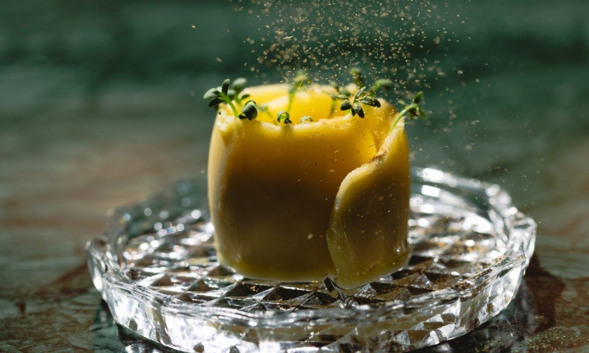 Os chefs também desidratam uma porção de aliche e processam até virar um pó, usado para finalizar a manteiga. Assim, potencializam o sabor do ingrediente principal e adicionam mais um toque salgado, que vem naturalmente, sem adição de sal.